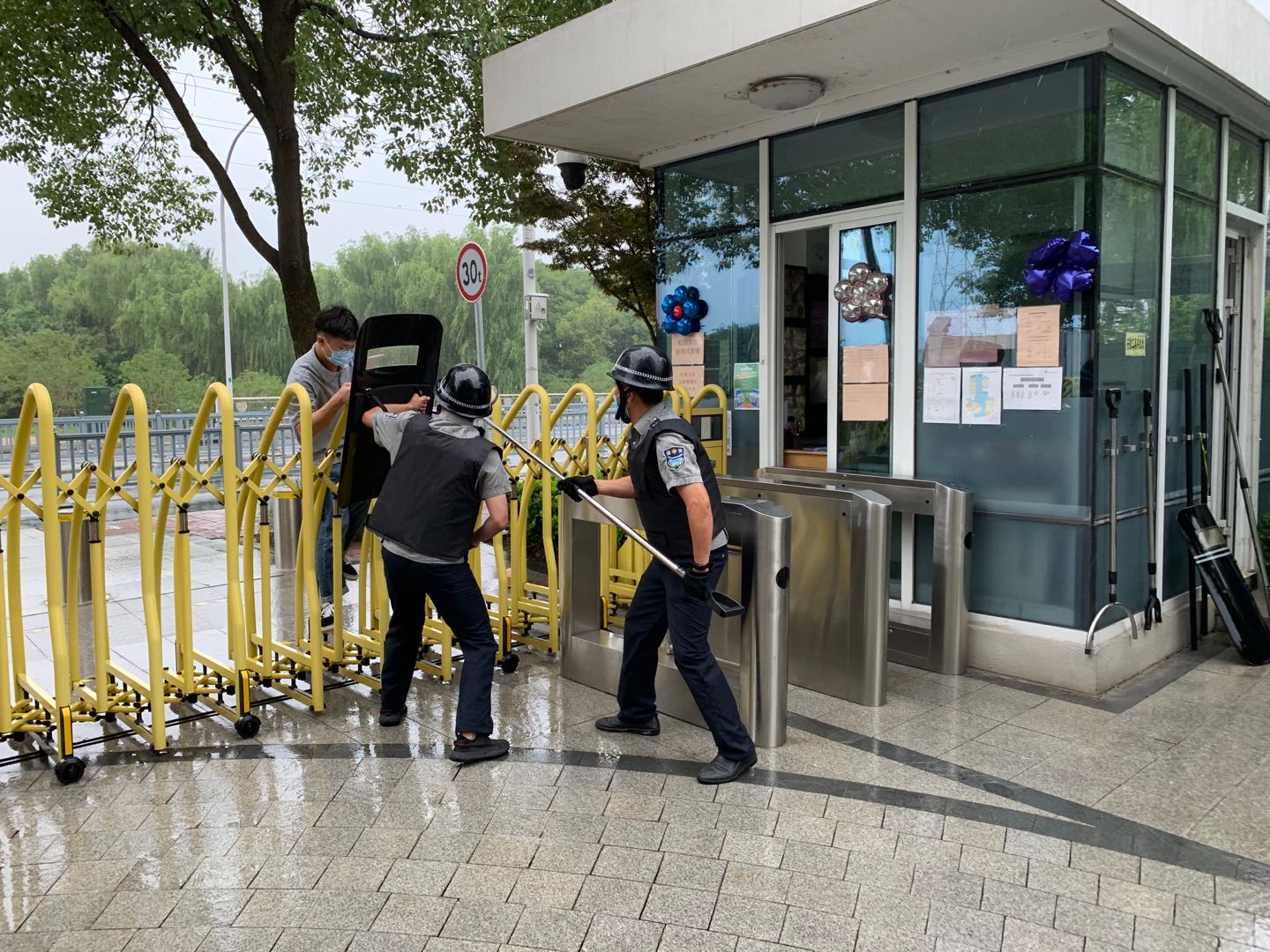 一位保安立即摁下一键警报按钮,并报告幼儿园领导,启动应急防护预案;